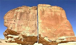 沙特阿拉伯泰玛绿洲的一个历史遗产地区,有一块巨石被完美地分割成两部分,到底是人为切割,还是有其他什么神秘力量呢!可以想象,这个巨石本来是一体的,但是不知道被某种神秘的东西给切开了,最奇怪的便是切口还如此平滑,就像被美国大片里的激光切过的一样,只要知道在以前那个时代,根本不可能有这种技术。